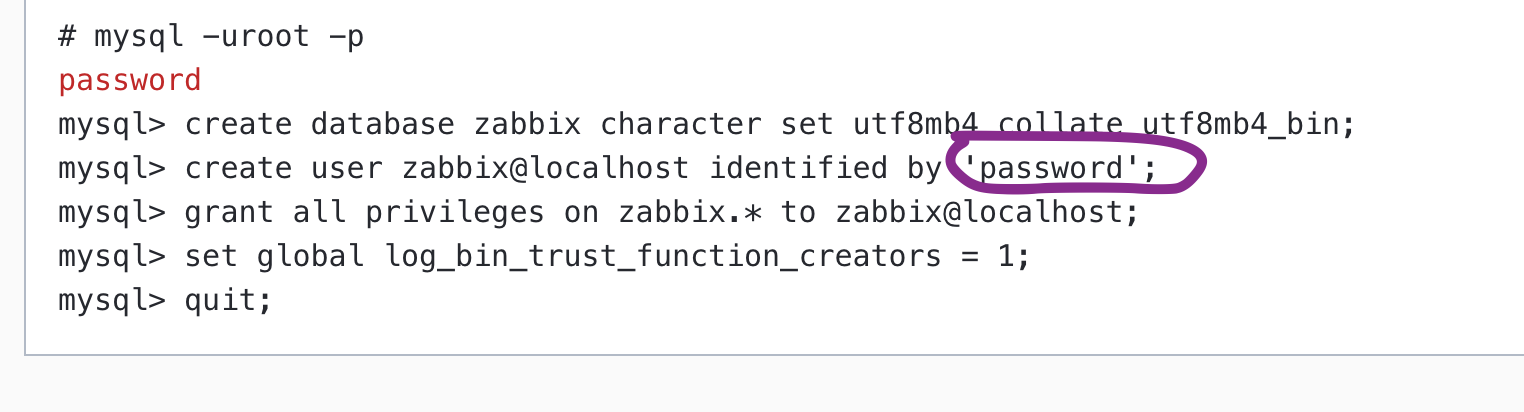 Dans la même partie du tutoriel, au niveau des commandes de la création de base de données, changez le mot "password" pour y placer le mot de passe de vôtre choix