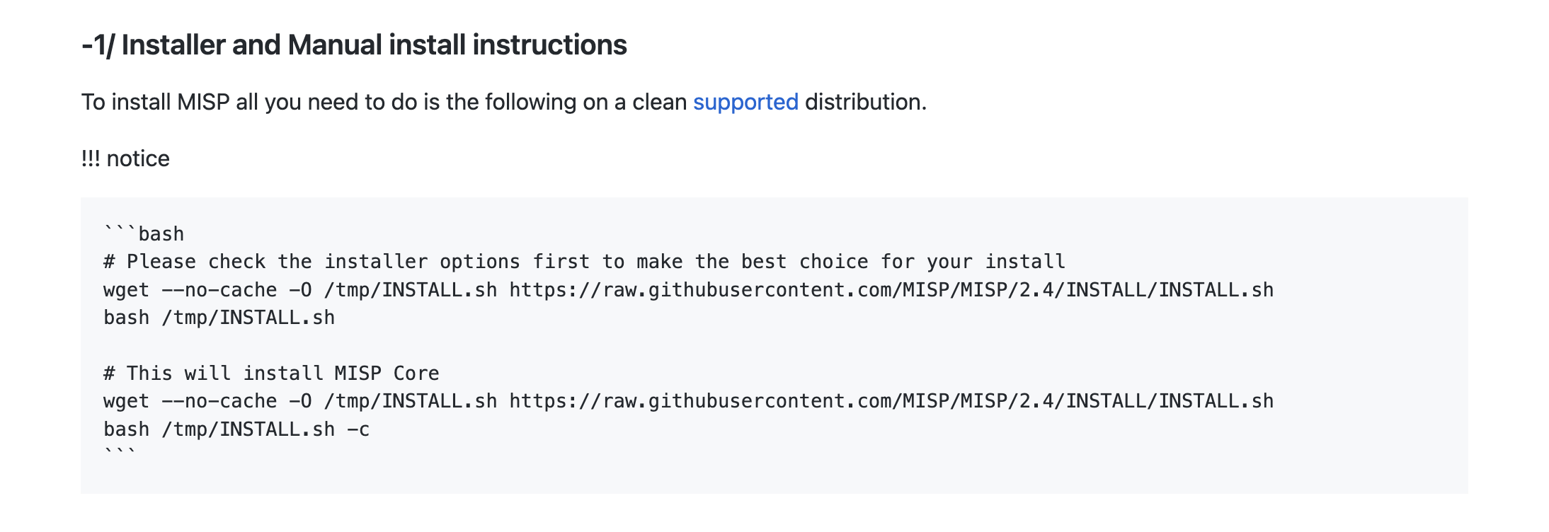 wget --no-cache -O /tmp/INSTALL.sh https://raw.githubusercontent.com/MISP/MISP/2.4/INSTALL/INSTALL.sh