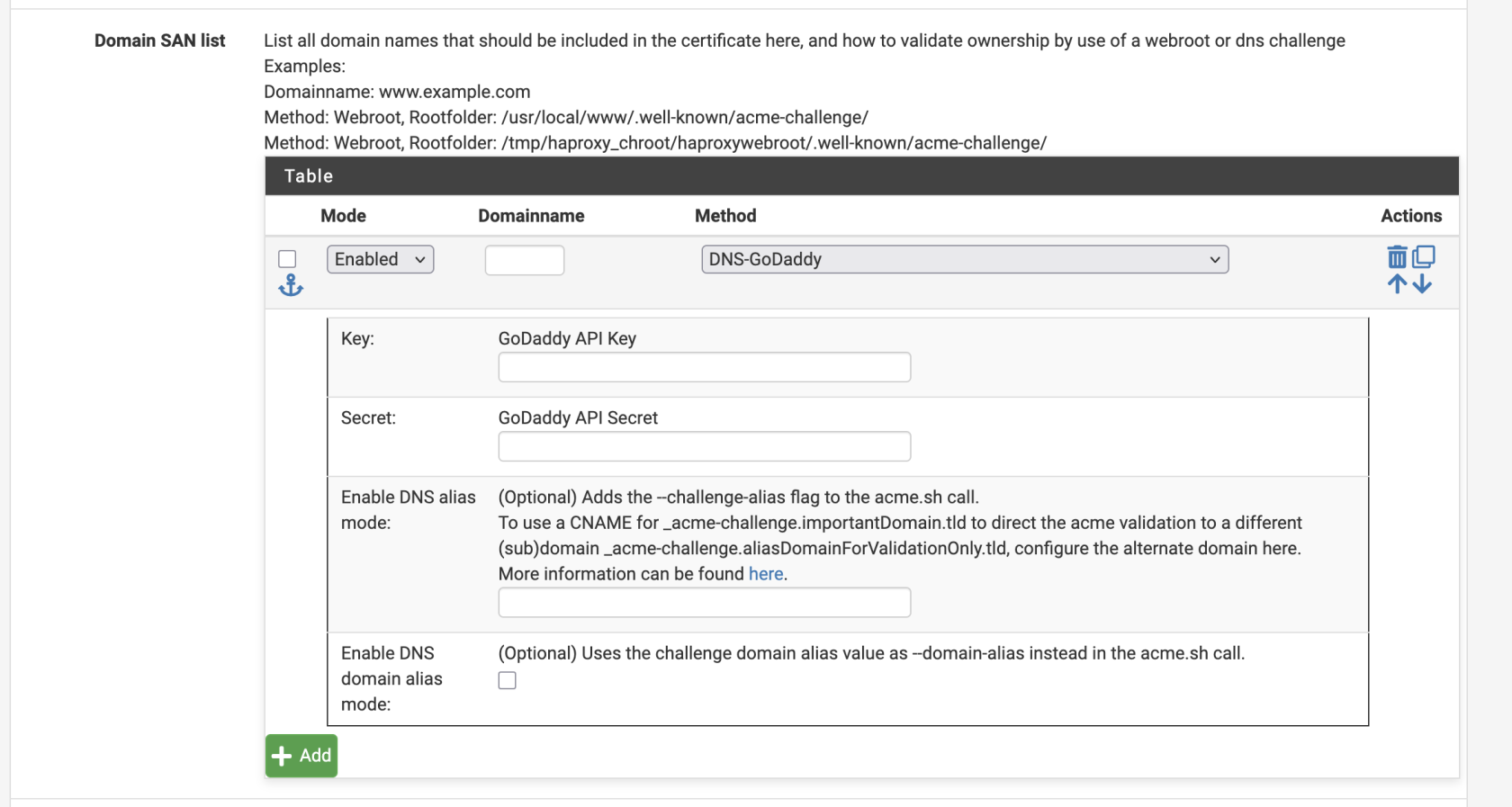 Pour la partie Domain SAN list, nous allons utiliser une clé api