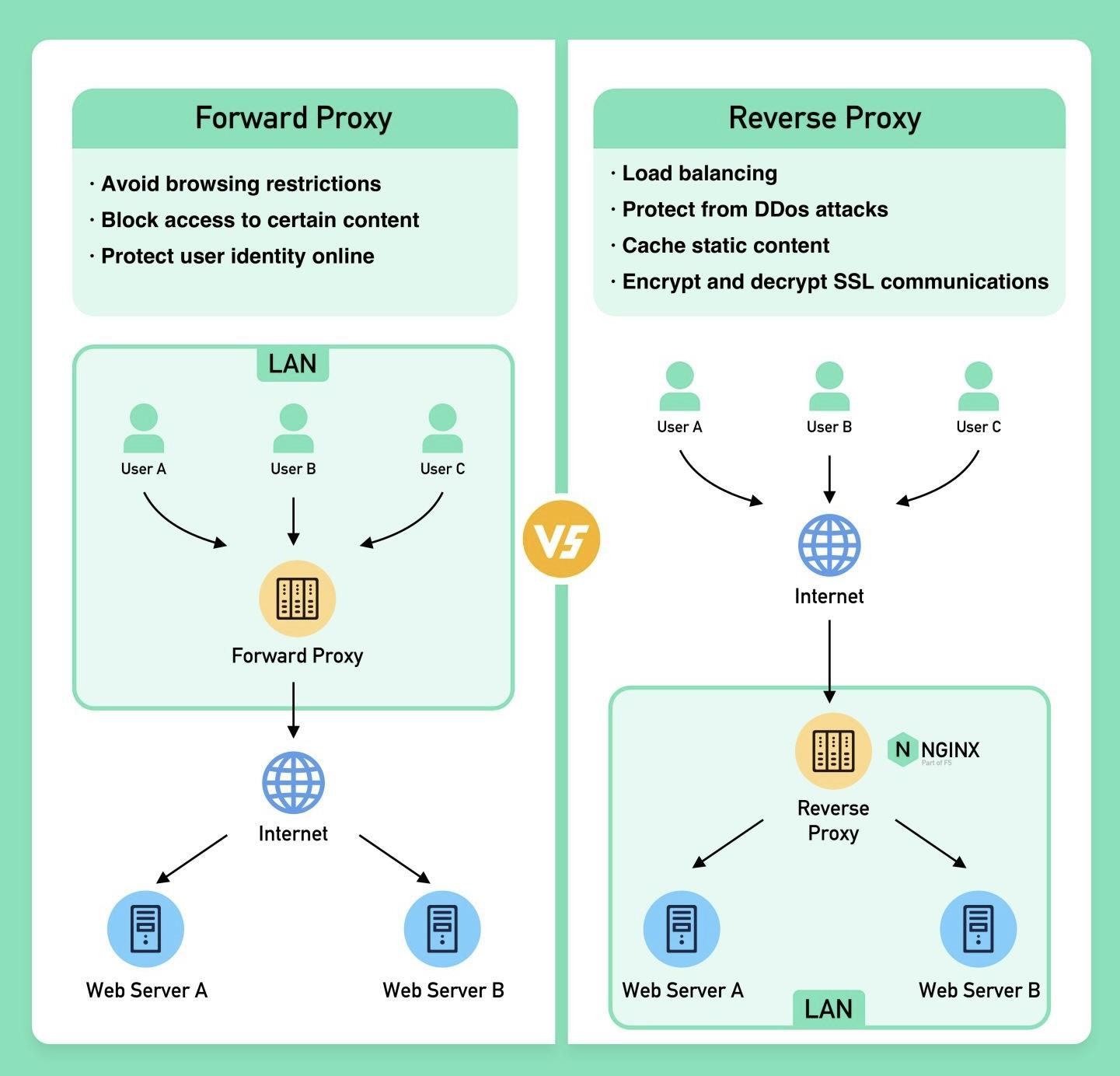 À l'inverse d'un le reverse proxy se place entre les flux qui sont sur internet et le serveur.