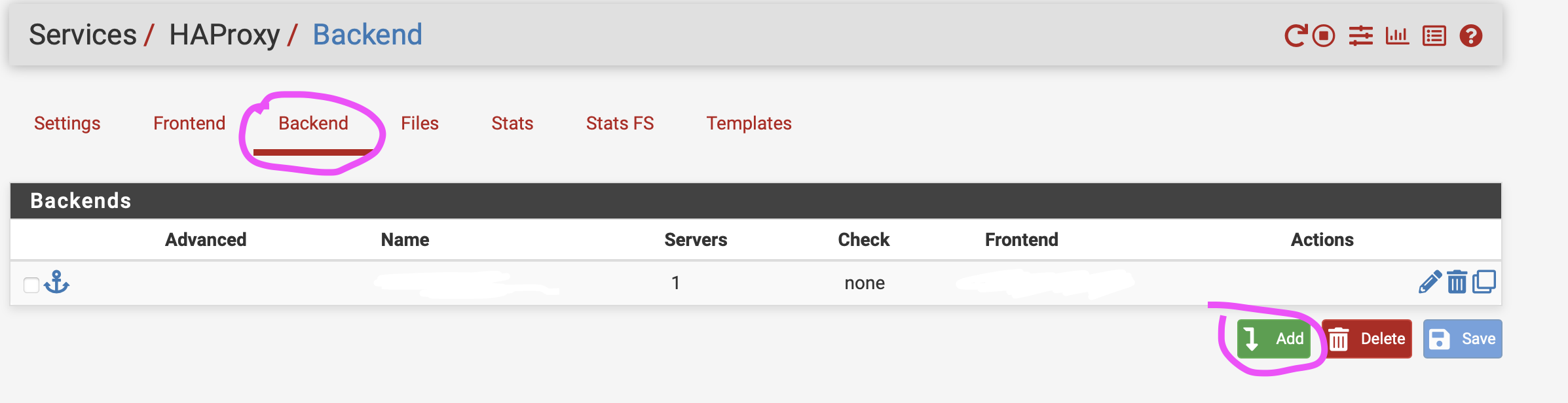 Rendez vous sur le paquet HAproxy, et sur la partie backend et cliquer sur ajouter