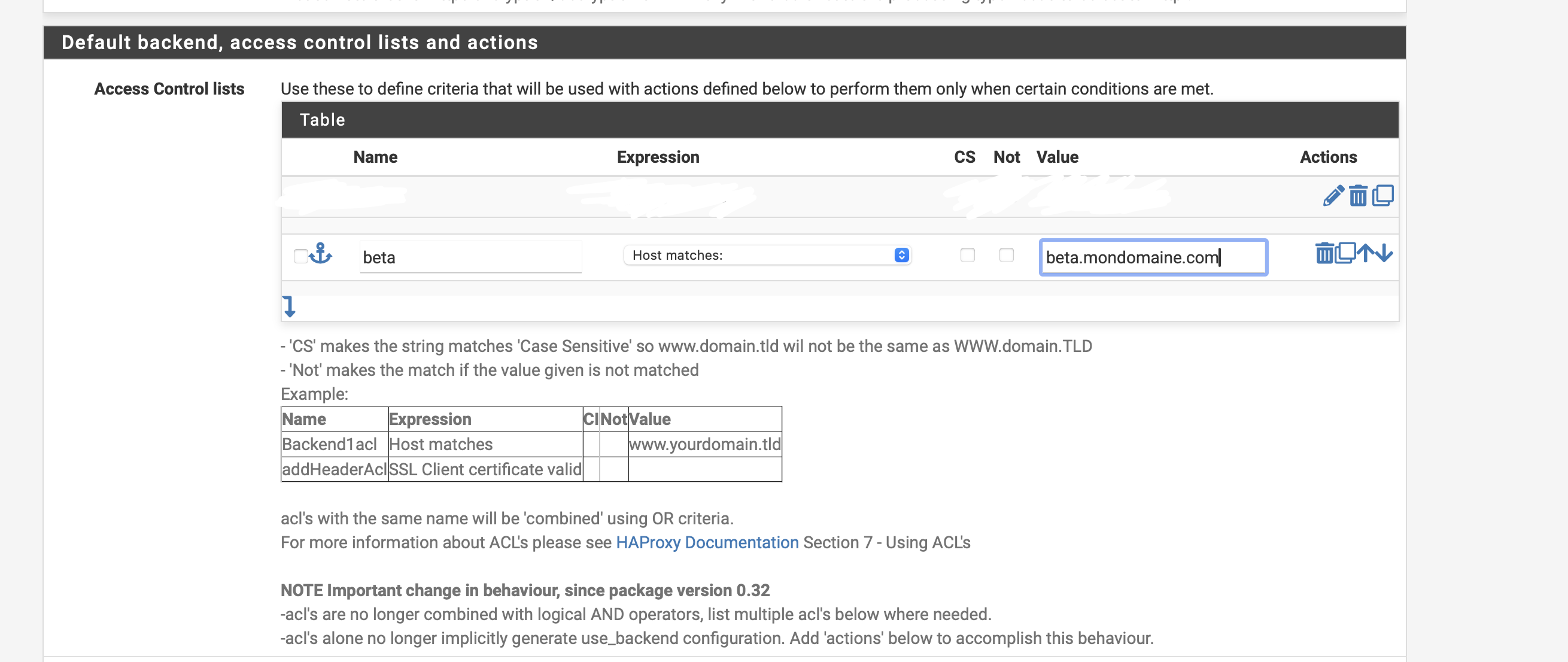 Ensuite au niveau des ACL rajouter une nouvelle règle s'appellant beta, au niveau des expressions mettez Host matcheset sur value placez l'url exact de votre site.