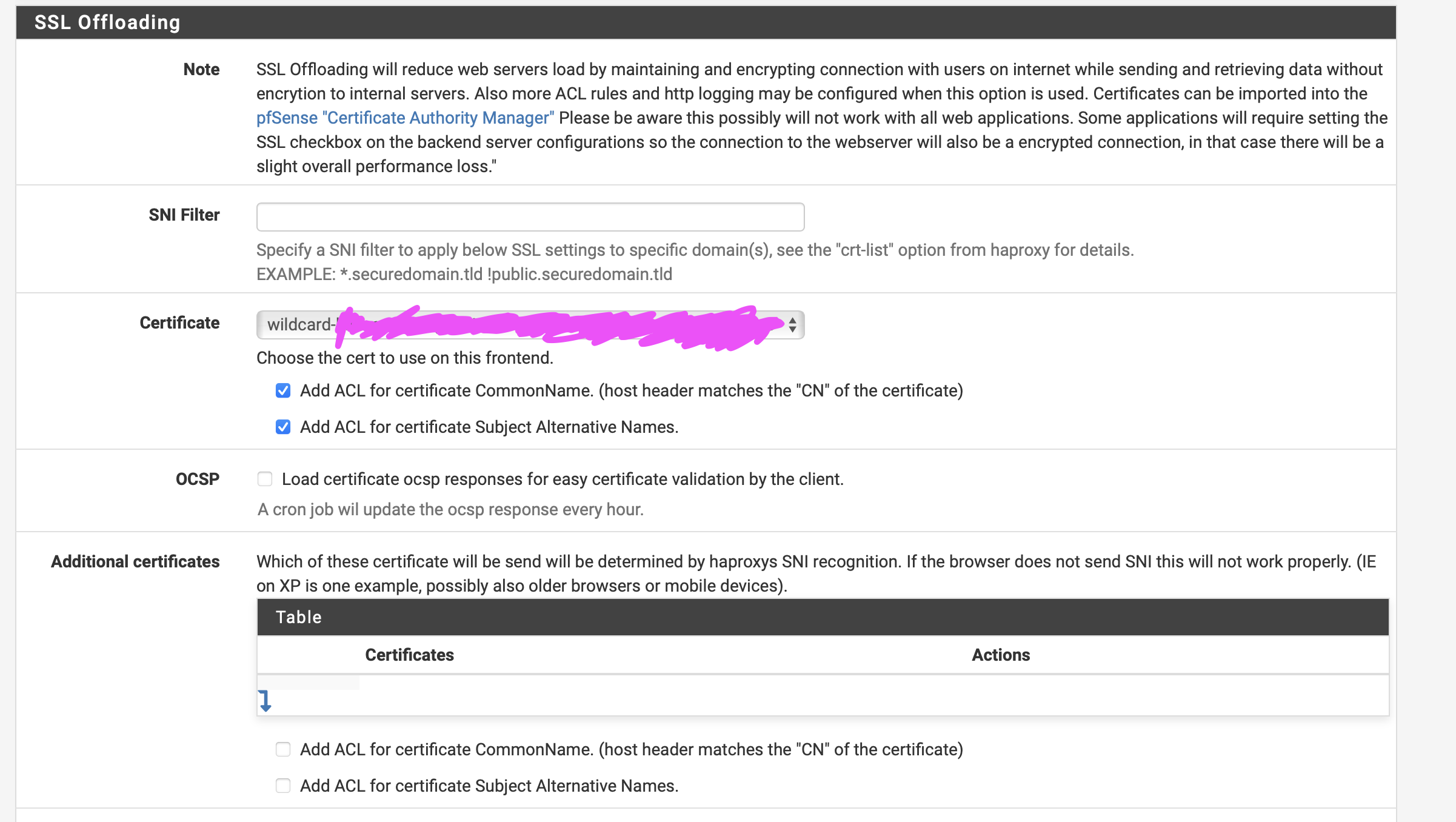 Sur la partie SSL Offloading sur Certificate choisissez votre wildcard et cochez les deux cases d'en bas comme sur l'image.
