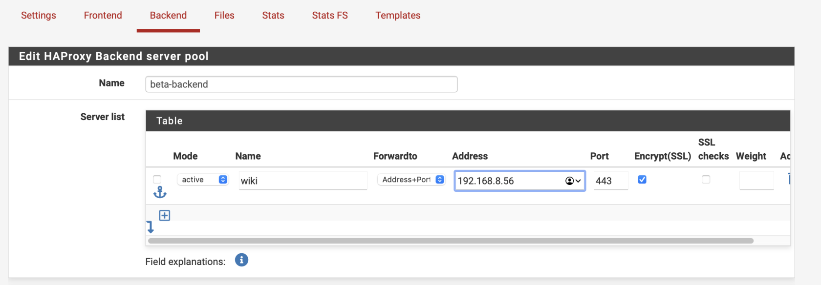 Rendez vous sur le paquet HAproxy, et sur la partie backend et cliquer sur ajouter Screenshot 2025-09-11 at 4.01.27 PM.png