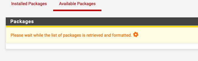 Sur l'onglet Available Packages, attendez le chargement et rechercher le packet wireguard pour l'installer.